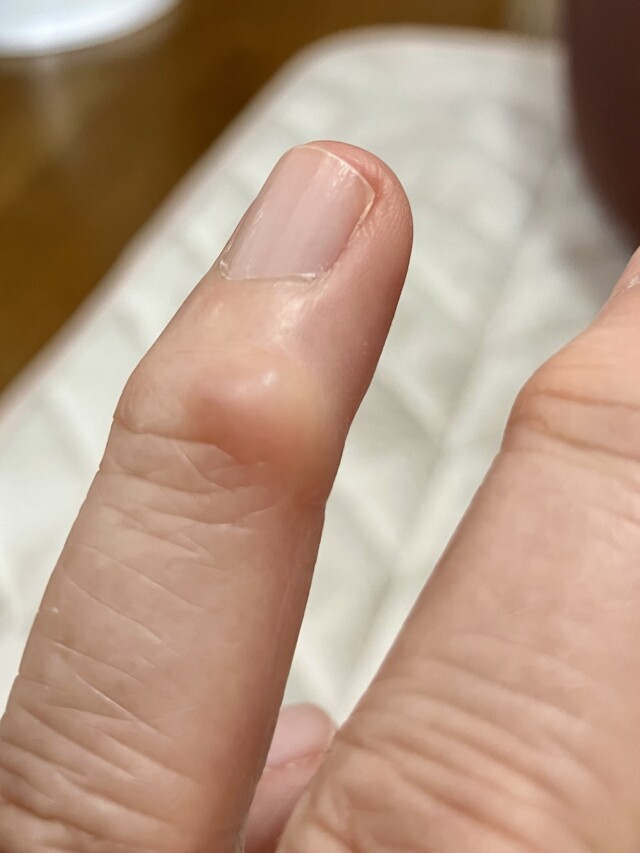 でも、ある晩のこと…。その粘液嚢腫がある左手薬指がズキズキして目を覚ましました。