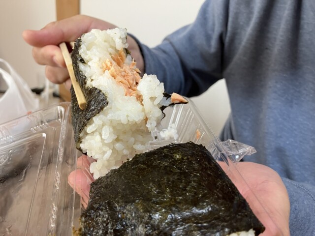 夫も私も、鮭と明太子をお持ち帰りで1個づつ注文。